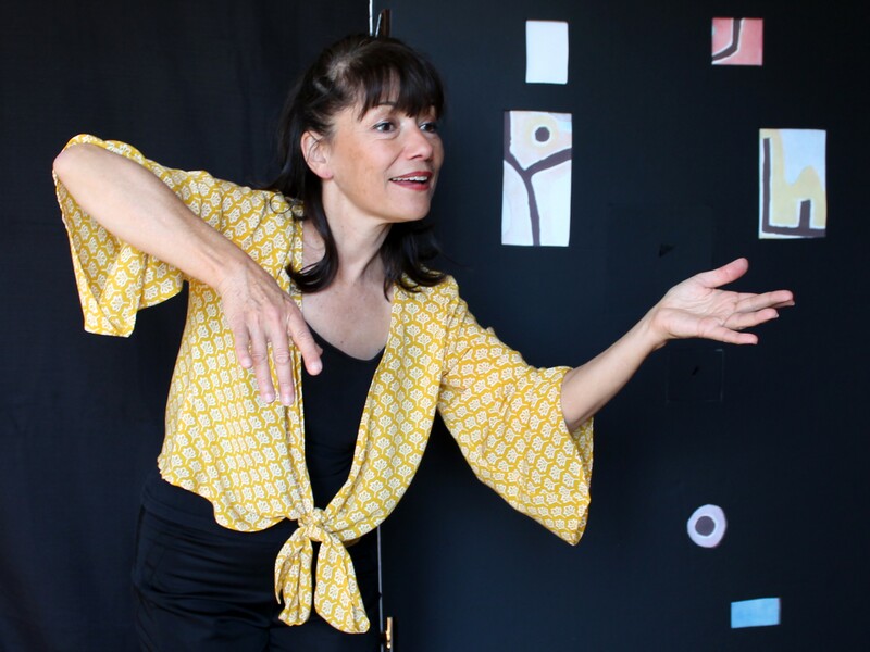 Au fil de la narration, la conteuse ouvre de petites fenêtres, dévoilant progressivement le tableau de Paul KLEE, Parc près de Lu, jusqu’à la découverte de l’œuvre dans sa totalité.