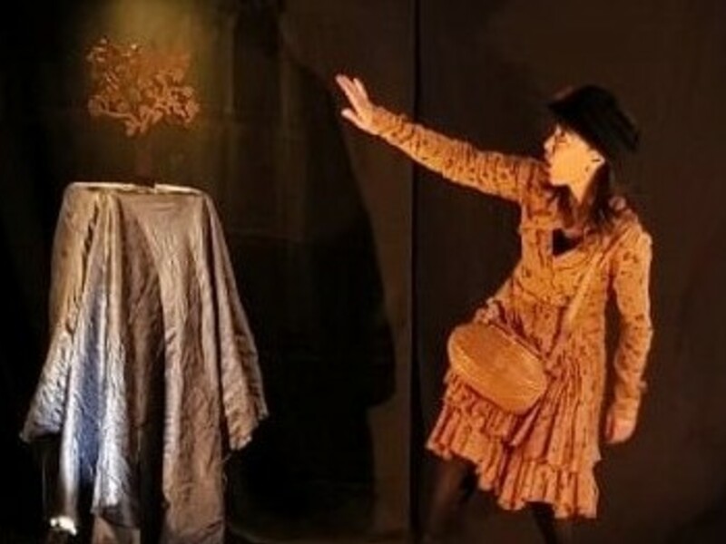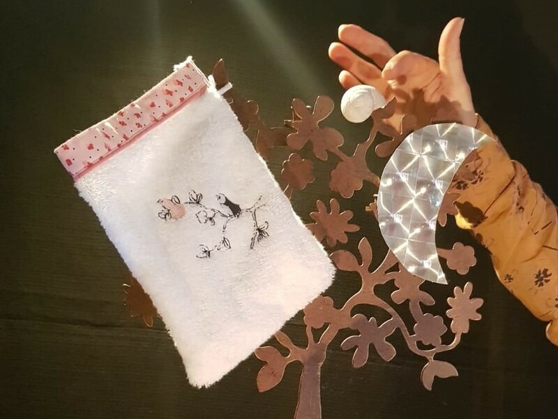 La conteuse tire de la musette que lui a donnée son père des objets qui déclenchent des histoires.
