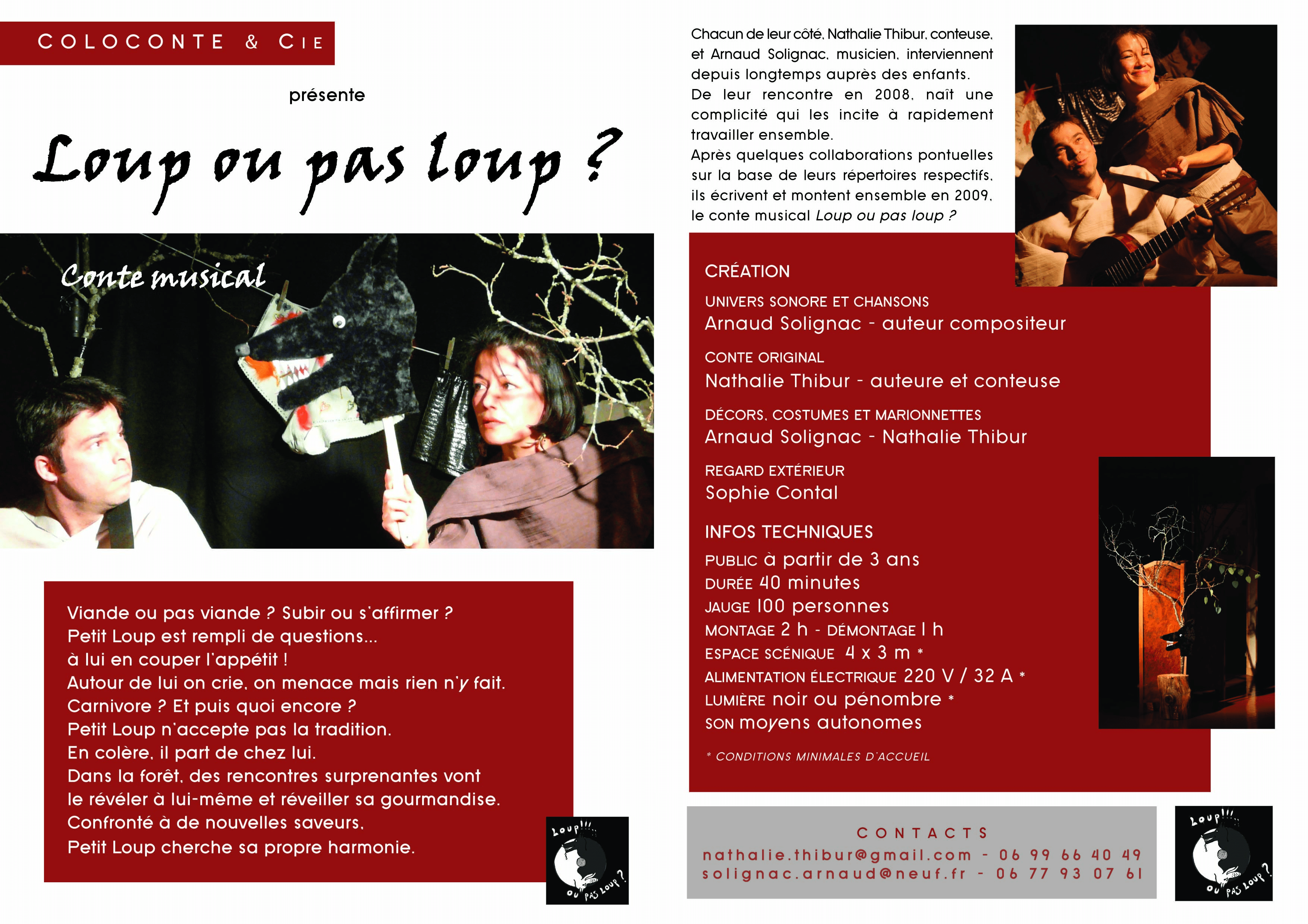 Avec humour et malice, les deux artistes vous font vivre en direct ce conflit des générations. Ils vous entraînent, à la suite de Petit Loup, dans une quête initiatique riche en rebondissements, un périple ponctuée de musique et de chansons originales